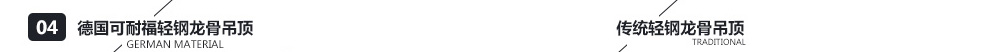 專用輕鋼龍骨,采用專用連接件,杜絕吊頂變形、開裂、蟲蛀等現(xiàn)象。
